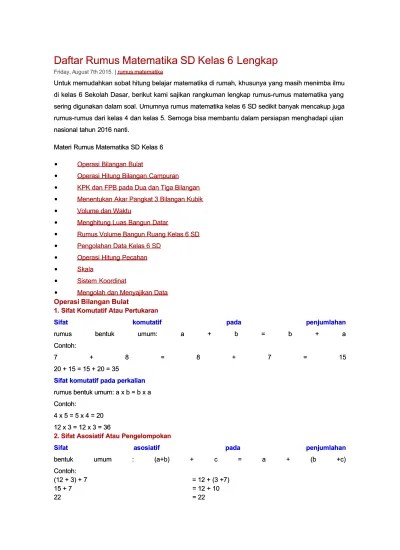 Rumus Mtk Kelas 6 - Matematika Kelas 6 Sd Shefalitayal - Rpp mtk k13 kelas 6 semester 2.. Latihan soal dan pembahasan uasbn matematika sd kelas 6. Ulangan harian bangun prisma dll download rpp bangun ruang tema 7. 2 ) x 8 = 6 anak x 8 = 48 anak (jika ingin mendownload soal ini, berikut linknya : Cara rumus mtk kls 5; N dan a ≠ 0)